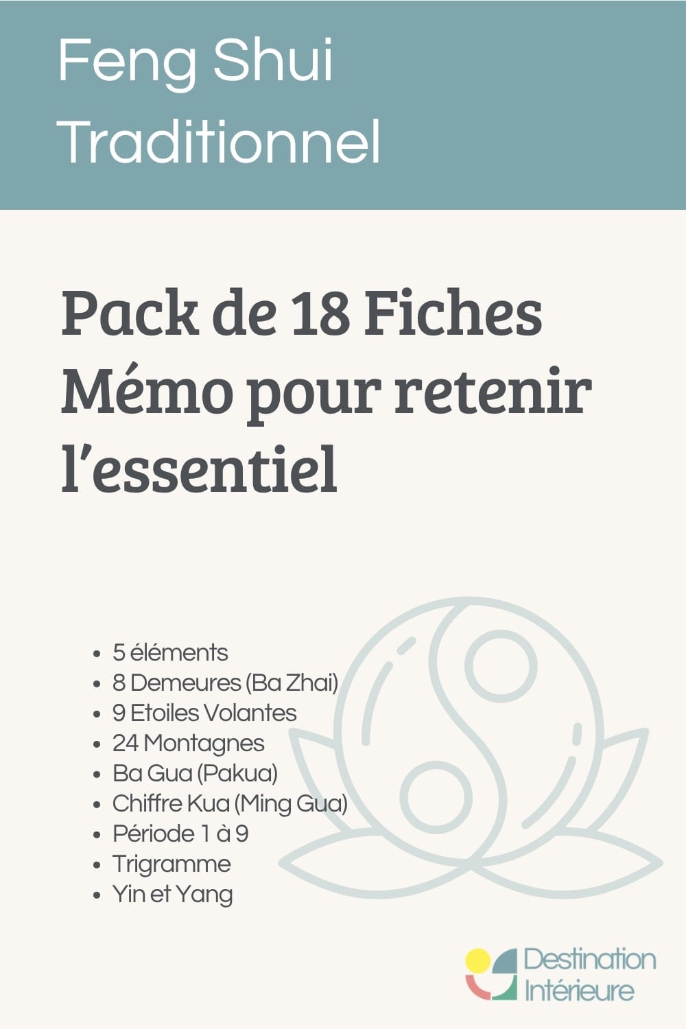 Pack de 18 Fiches Mémos Feng Shui