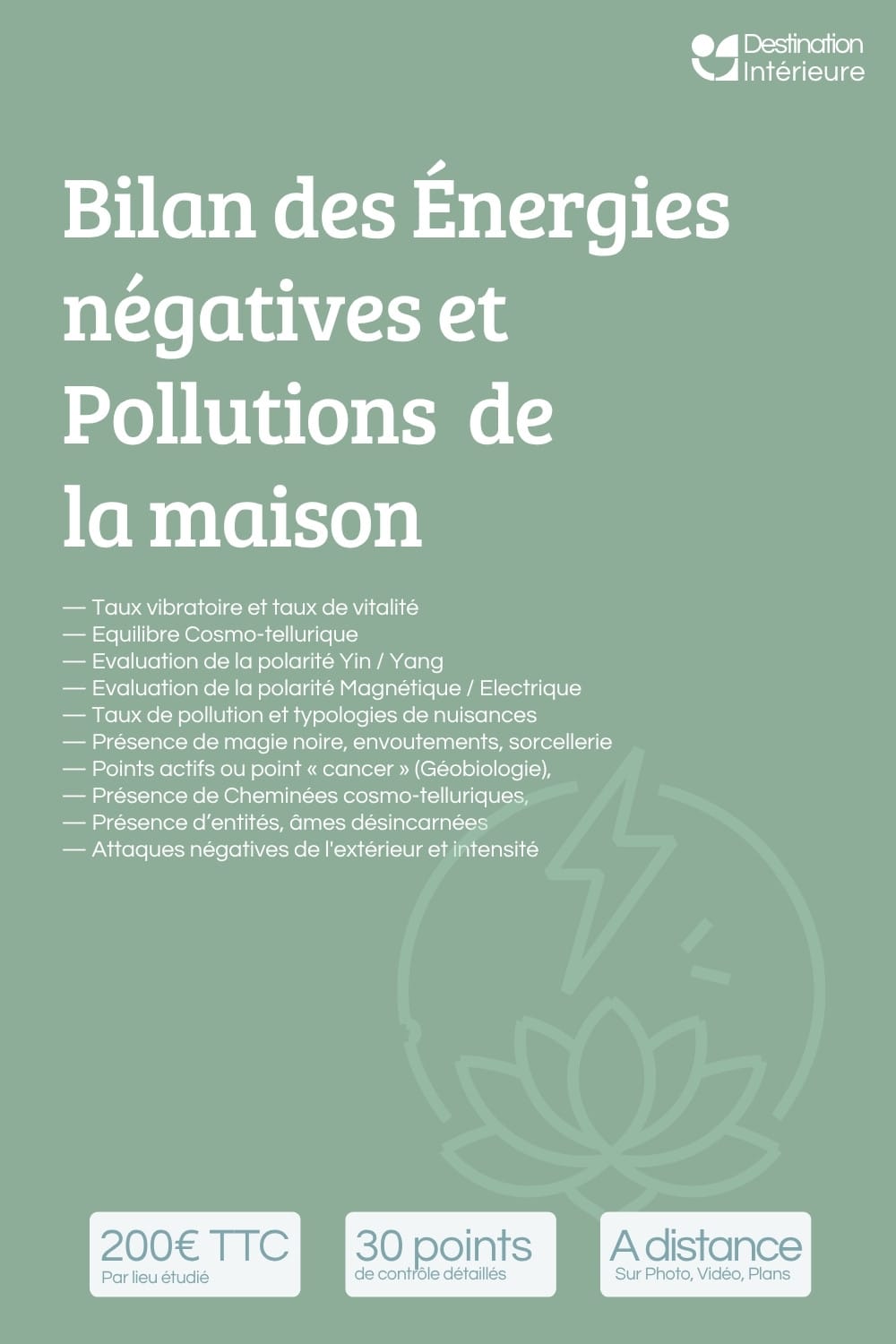 Les prestations à distance de Destination Intérieure vous permettent de bénéficier d'une expertise complète en feng shui traditionnel, géobiologie ou nettoyage énergétique, depuis chez vous — pour toute la France et l'étranger.